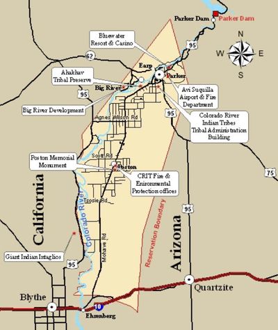 The Colorado River Indian Reservation is a federally-recognized reservation located on almost 300000 acres in western Arizona and eastern California just south of Parker in La Paz County. In 1865 the Colorado River Indian reservation was established by an Act of Congress and approved by President Abraham Lincoln as a homeland for Indians of the Colorado River and. There are currently about 3500 active Tribal members.